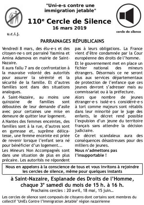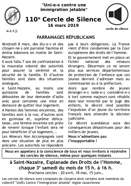 [UCIJ] 110ème cercle de silence : parrainages républicains