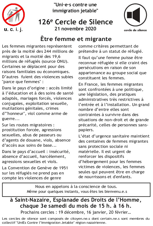 [UCIJ] 126è cercle de silence : Etre femme et migrante