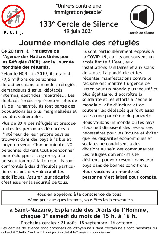 [UCIJ] 133è cercle de silence : Journée mondiale des réfugiés