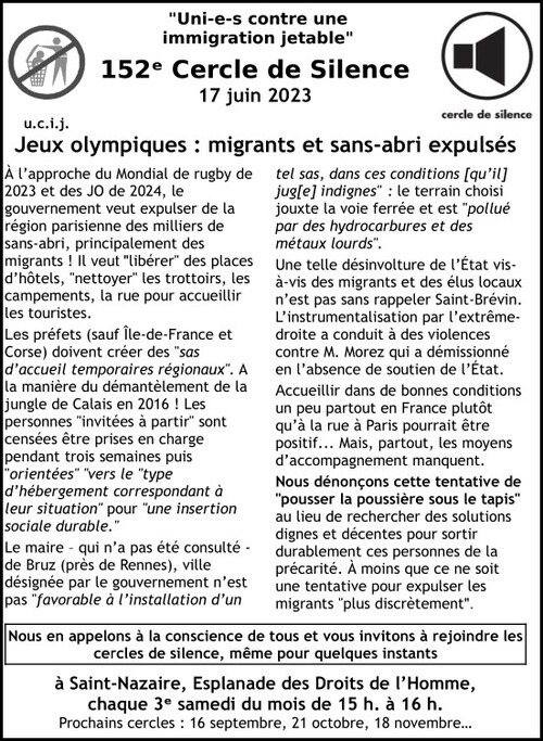 [UCIJ] 152è cercle de silence : Jeux olympiques : migrants et sans-abri expulsés