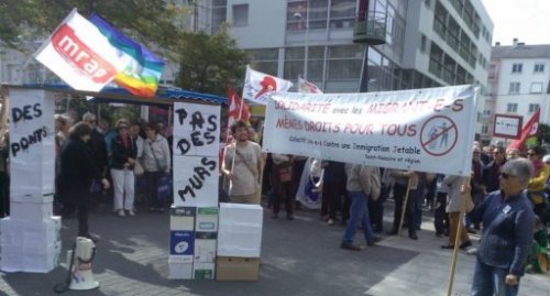 Accueil > Migrations > Manifestations > [UCIJ] 300 manifestants "pour des ponts, contre les murs