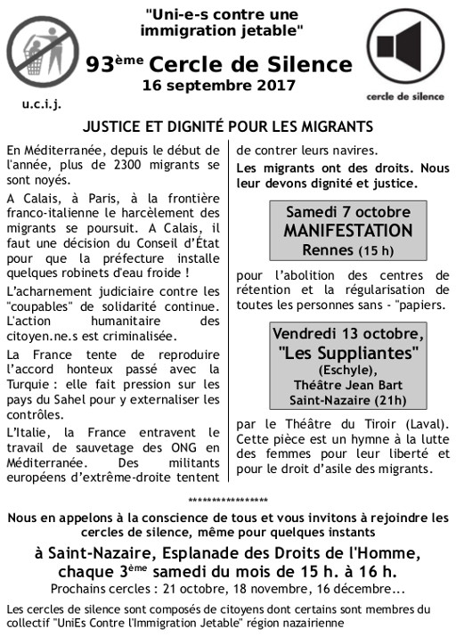 Accueil > Migrations > Cercles de silence > [UCIJ] 93ème cercle de silence : Justice et dignité pour les migrants