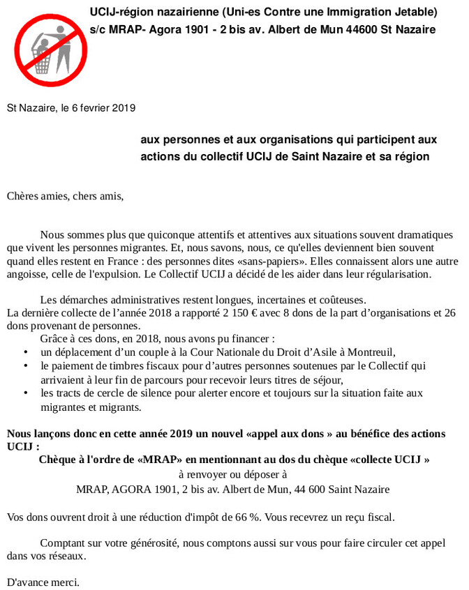 [UCIJ] Appel à dons 2019vendredi 8 février 2019