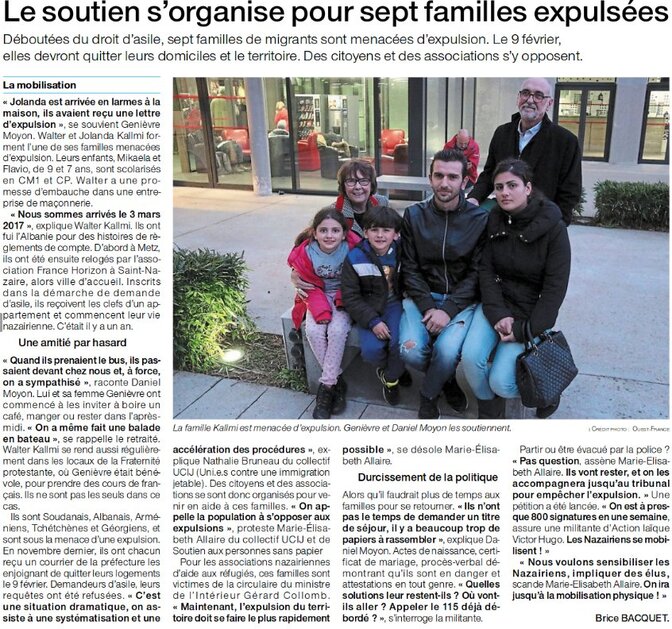 Lors d’une conférence de presse tenue ce mardi 30 janvier, le collectif "Uni-e-s contre une immigration jetable" a indiqué que la Préfecture de Loire-Atlantique avait adressé à des familles de déboutés d’asile une injonction à quitter leur logement avec leurs enfants le 9 février 2018. A sa connaissance, au moins sept familles viennent de recevoir cette injonction.