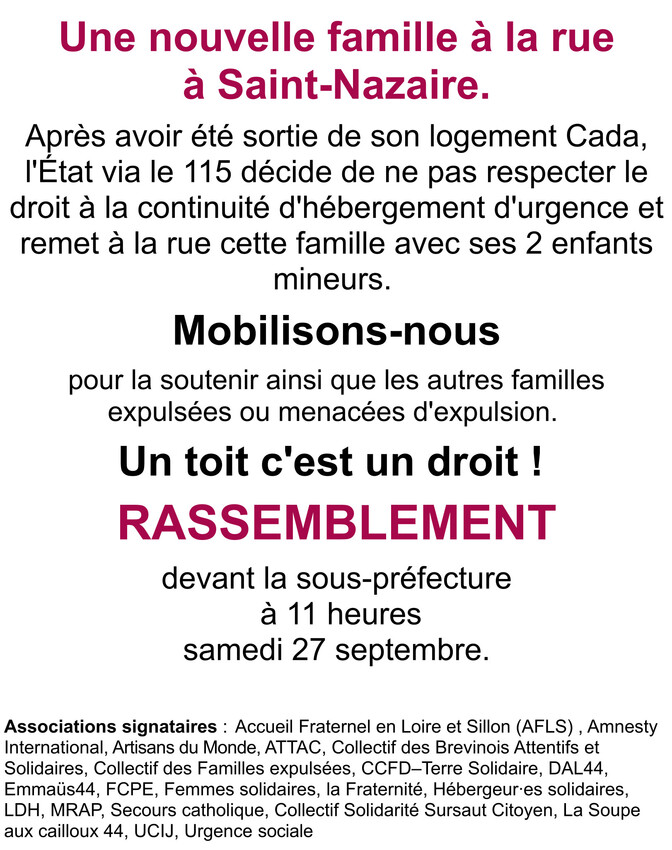 RASSEMBLEMENT devant la sous-préfecture à 11 heures samedi 27 septembre.