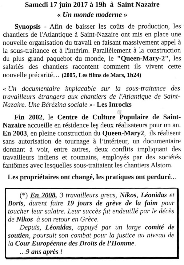 Samedi 17 juin 2017, "Queen-Marys2, l’envers du décor" projection de "Un monde moderne"