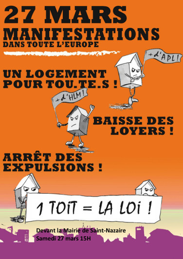 Samedi 27 mars, dans 21 pays d’Europe, est organisée une journée d’action pour le droit au logement, l’arrêt des expulsions et contre le logement cher.