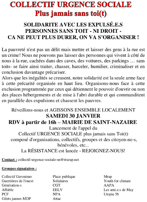 Samedi 30 janvier, 16 heures, mairie de Saint-Nazaire