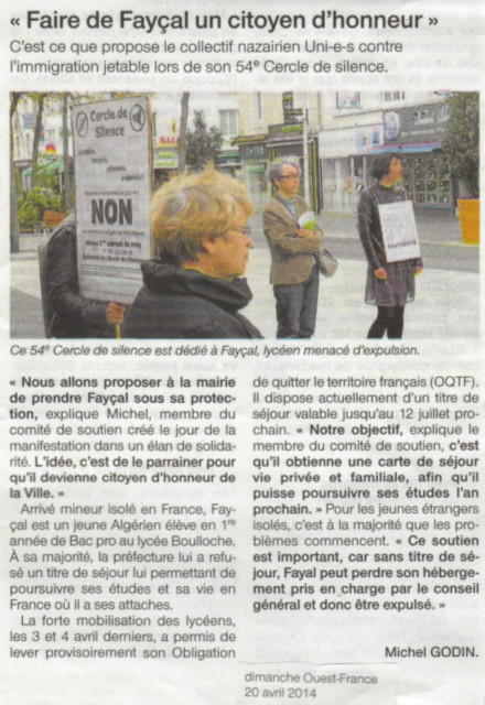 [ucij] 54ème cercle de silence : "Soutien à Fayçal"