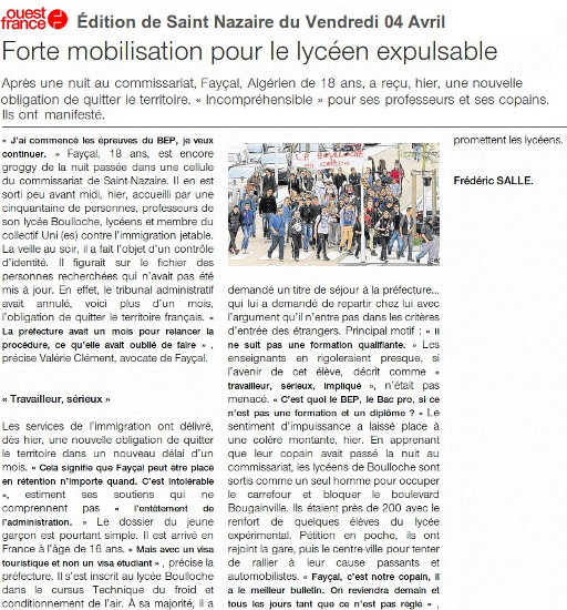 Voir Presse-Océan "Un jeune Algérien de St-Nazaire sous le coup d’une expulsion" :
